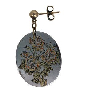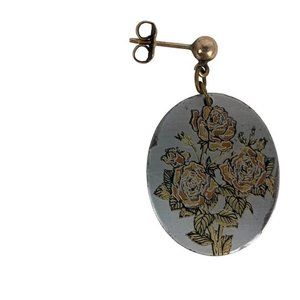 Reed & Barton Damascene Hanging Oval Pierced Earrings Roses Cottage Shabby Chic