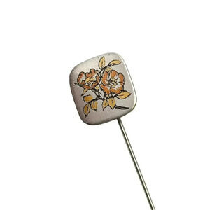 Reed & Barton Damascene Orange Yellow Floral Stick Pin Silver Tone Vintage