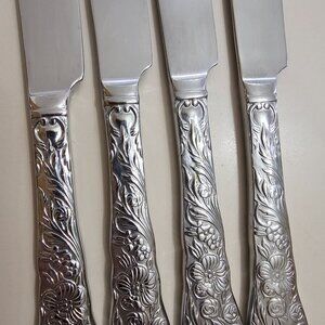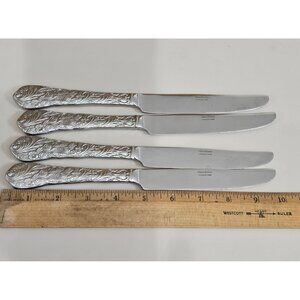 Reed Barton Flora Dinner Knives 10" set/4 stainless embossed flowers chintz