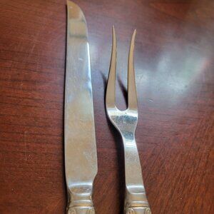 Reed & Barton Rennesaince Stainless Steel Carving Knife & Fork Set Vintage Ornat