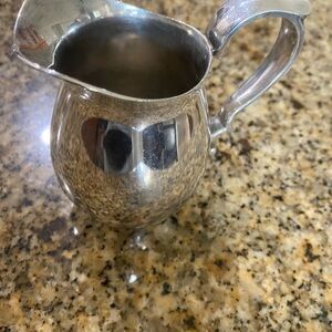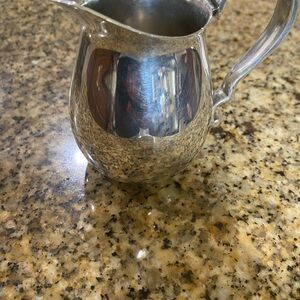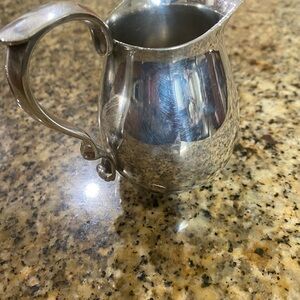 Enhance your dining experience with this elegant silver creamer pitcher. Its sleek design adds a touch of sophistication to any table setting.