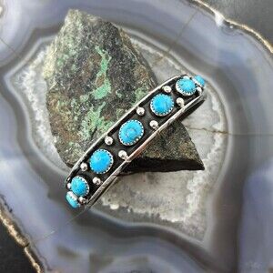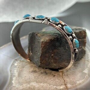 Sterling Silver 7 Turquoise Decorated Single Row Bracelet For Women, Signed by Native American Artist Reed Charley.