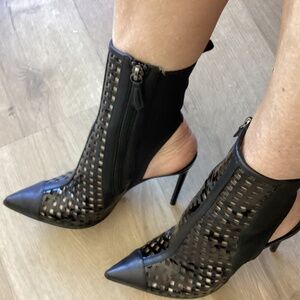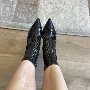 Reed Krakoff Size 37.5 EU 7 US Black Perforated Patent Leather Ankle Boots WOW