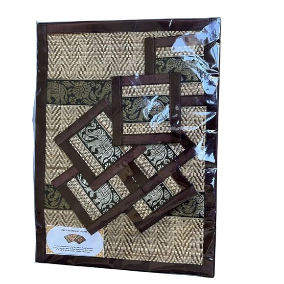 reed placemat elephant design dining table heat protection natural material table decor home essentials brown placemats set of 6 indoor use elegant design table protection lightweight placemats