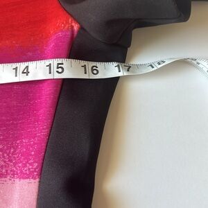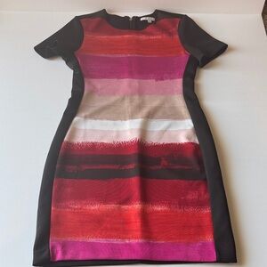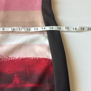 NWOT Reed Sheath Dress This elegant dress features a striking multicolor striped pattern, perfect for any occasion. The blend of red, pink, and black hues adds a vibrant touch to your wardrobe.