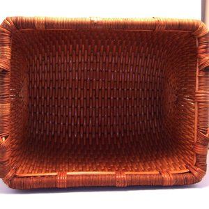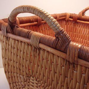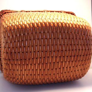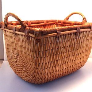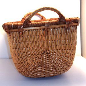 Reed Woven Handled Basket Two Tone Rounded Bottom Excellent Condition