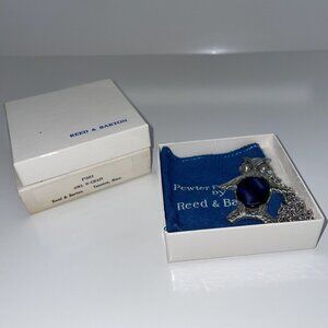 Reed and Barton Owl Pendant Necklace Blue Swirl Jelly Belly Pewter Bird Boxed N8