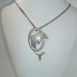 Charming Reed and Barton Pewter Dolphin Necklace.