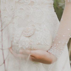 Woven reed clutch bag with hard casing. Fully beaded with freshwater pearls, moonstone beads, cut beadas and crystlal