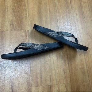 Chic black sandals with a textured strap. Ideal for everyday comfort.