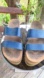 Vegan platform slide on comfort sandal. Light tone navy blue. Size 10. Pre-owned with light signs of wear that can be seen in photos and video.