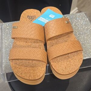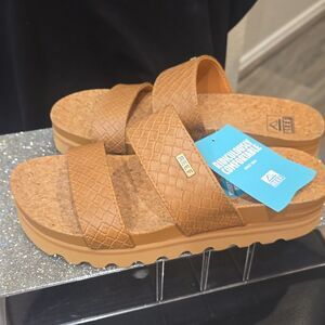 Reef Cushion Vista Hi Slide Sandals- Tan Wicker