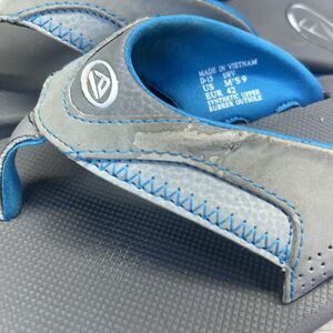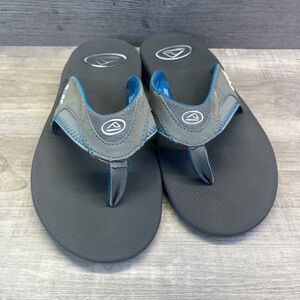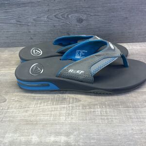 Reef Fanning Flip Flops Bottle Opener Gray Blue Sandals Mens Size 9