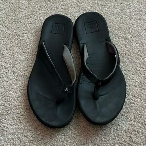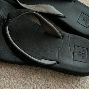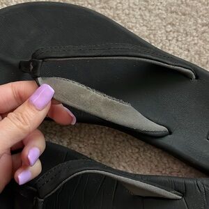 These flip flops show signs of wear. No major flaws. Minor distressing. See photos for details. Some creasing shown in photos.