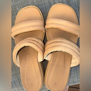 • Upper: Premium, sustainably sourced material with 2-bar slide design and 5mm foam padding for extra comfort. Features hidden elastic strap for walkability and 30% recycled metal hardware.