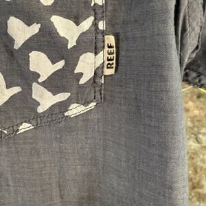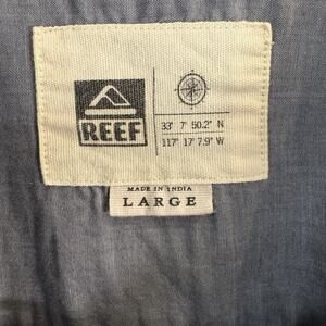 Reef Men’s Casual Button Down Shirt Gray Pocket Accent 100% Cotton L Summer