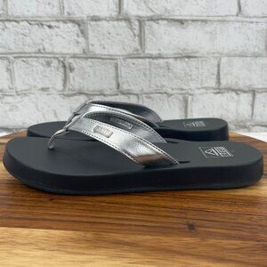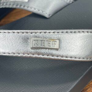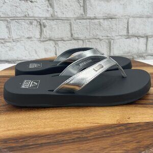 Reef Mia Sassy Womens Sz. 7 Silver Gunmetal Black Thong Flip Flop Sandals