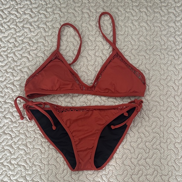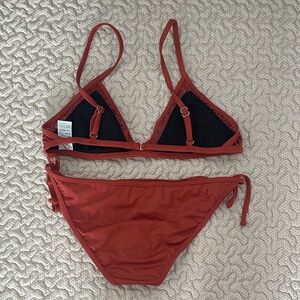 Stylish rust bikini with intricate trim (up close in 3rd picture). Ideal for sunny beach days.