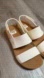 White and tan Reef Sandals in excellent condition. The white does show a little discoloration near the bottom of the shoe but still look great!! The pictures/video show the true condition of the shoes. Still look and feel amazing!!
