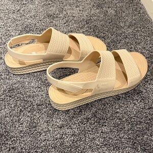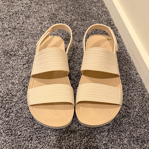 Chic and comfortable Reef sandals. Cream color with textured straps. Bought in Australia because I forgot mine, don’t need these anymore. Only worn twice to and from the beach.