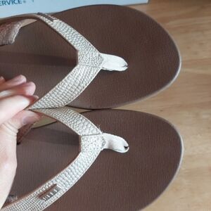 Reef Shimmer Croc Embossed Slip On Sandals Flip Flops Tan 10 Beach Summer