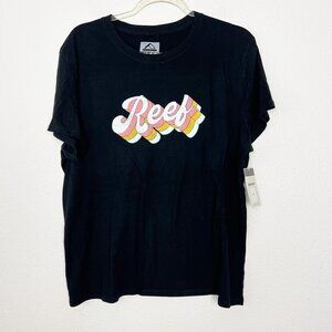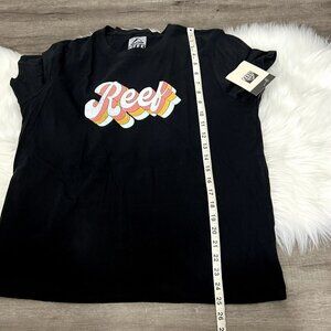 Reef Surf Black Retro Logo Short Sleeve Graphic Tee Womens Large