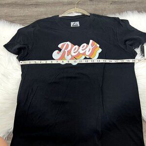 Reef Surf Black Retro Logo Short Sleeve Graphic Tee Womens Medium