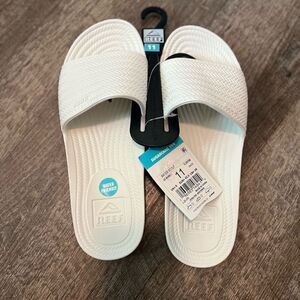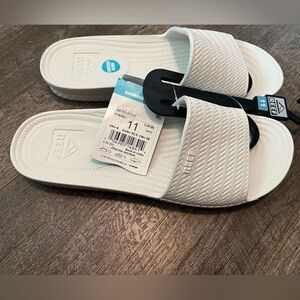 This listing is for a NWT's Reef Water Scout Sandals in size 11, in white. Be one with your sandal, as in the one-piece construction of our Water Court. All of it's water-friendly and totally comfortable, thanks to its lightweight construction, arch support, and heel cup. Note the pretty espadrille details, too.
