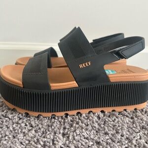 Reef Women's Black and Tan Platform Sandals