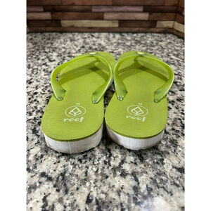 Reef Womens Green White Open Toe Slip on Flat Flip Flop Sandals Size 10