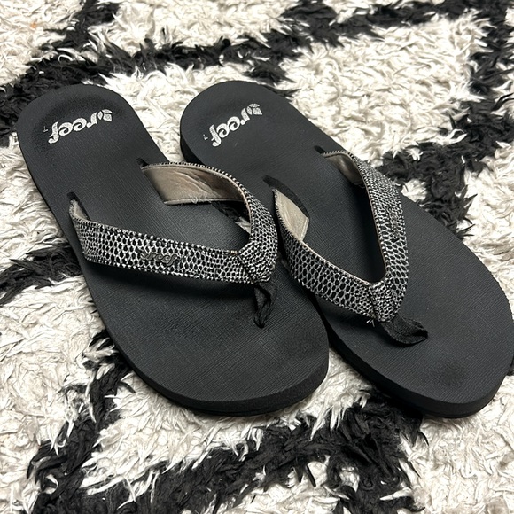 Black reef flip flops, worn a few times.