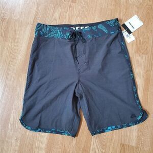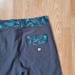 Breezy, easy-to-wear board shorts that feature a mix of block color with a tropical trim. A 19-inch outseam gives you coverage plus freedom, with a draw cord waist and back flap pocket. Stretchy with a slightly slubby texture, this mix of fabric and stretch will serve you all season long.