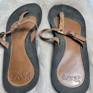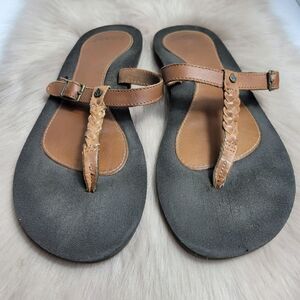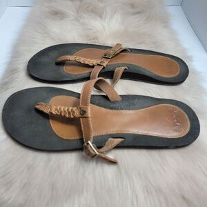 Reef Women's Brown Leather Flip Flops Braided Size 9