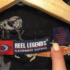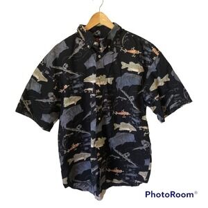 Reel Legends Fishing Shirt Mens Large Black Graphic Button Down Short Sleeve