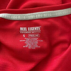The Reel Legends Freeline Long Sleeve Top features moisture management technology and quick dry properties. Perfect for any outdoor activity, it also offers UPF 30 sun protection. Solid red 100% polyester on soft lightweight fabric, a v-neckline. Women's size small. New without tags