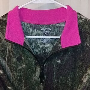 Pre-owned in good condition Reel Legends half zip jacket. Colors are camo and pink. Size is large. It is a lighter weight jacket. Measurements are: shoulder width is 18" across, armpit to armpit is 24" across, sleeve length is 24" long and total length is 27" long. No rips, holes, stains ir pilling.