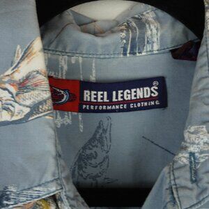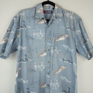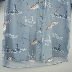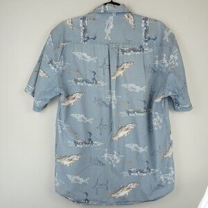 Reel Legends Light Blue Fish Short Sleeve Button Up Shirt Size Medium