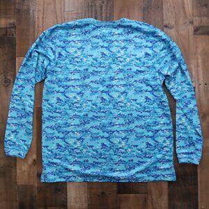 Reel Legends mens large long sleeve "sun shade" shirt in a cool blue pixelated camo pattern.