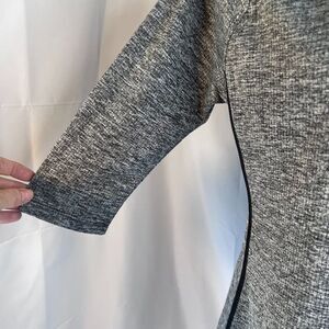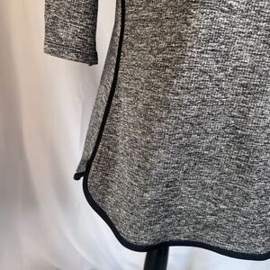 Scoop neck, 1/2 sleeve, pullover, fitted, black trim down sides