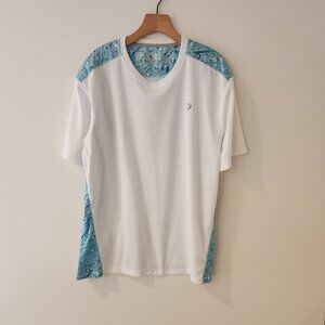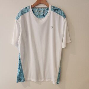 Reel Legends Shirt Aquaflauge Short Sleeve White Blue Vented Fishing Large
