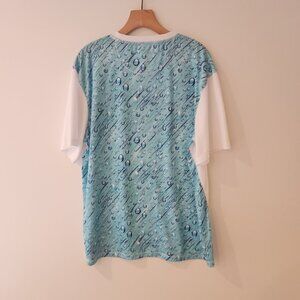 White Front with Blue Aquaflauge Back and Arm Accents Featuring Realistic Water Droplets Design.