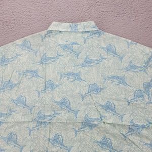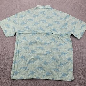 Reel Legends Shirt Mens Large Green Fishing Marlin All Over Print Fishing Caped