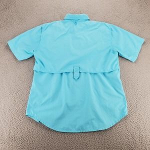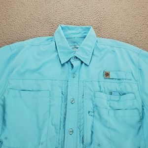 Reel Legends Shirt Mens Small Blue Button Up Pockets Fishing Caped Outdoors Boat