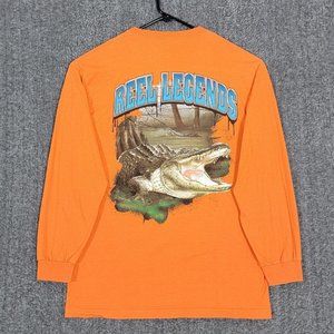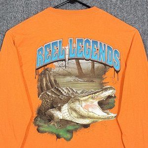 Reel Legends T-Shirt Mens Large Neon Orange Long Sleeve Alligator Graphics Print.