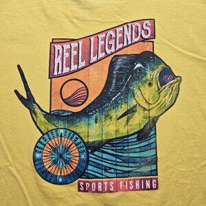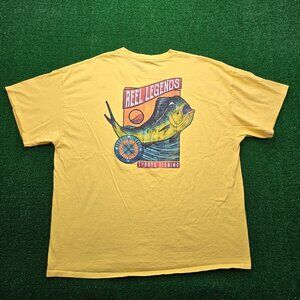Reel Legends Tshirt Mens 2XL Yellow Short Sleeve Mahi Fish Sports Fishing Casual