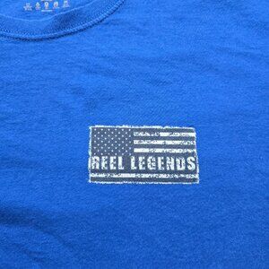 Reel Legends Tshirt Mens Large Blue USA Flag Patriotic Fishing Marlin Graphic