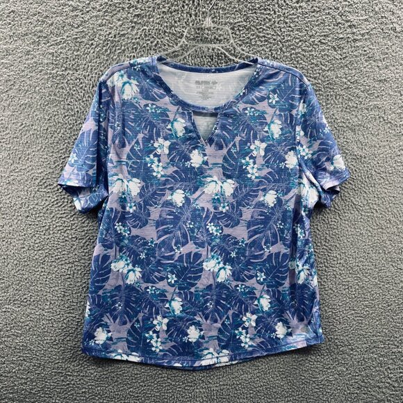 Reel Legends Womens Free Line Top 1X Blue White Floral Short Sleeve Fish Shirt