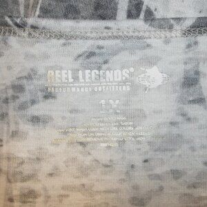 Reel Legends Womens Top Shirt Blouse Plus Size 1X Keyhole Geometric Gray
