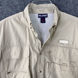 Reel Legions Performance Vented Fishing Shirt Men M Tan Pockets Short Sleeves