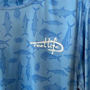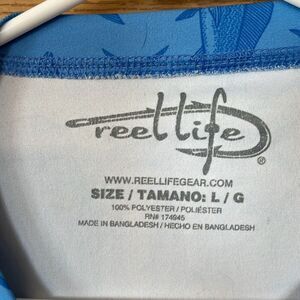 This shirt is made by Reel Life. It’s a blue long sleeve fishing style shirt. Size large and in very nice pre owned condition. Smoke and pet free home.